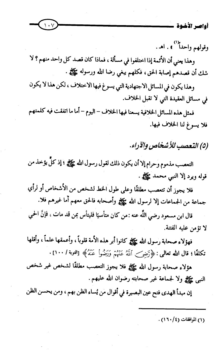 فلا يجوز أن تتعصب مطلقاً وعلى طول الخط لشخص من الأشخاص أو لرأى جماعة من الجماعات إلا لرسول الله - صلى الله عليه وسلم - وأصحابه فالحق معهم أما غيرهم فلا.