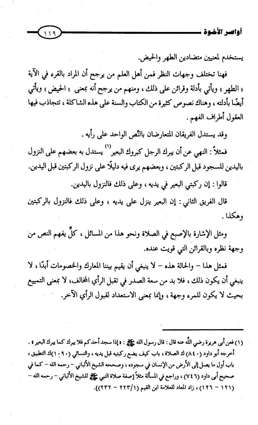 فمثل هذا - والحالة هذه - لا ينبغي أن يقيم بيننا المعارك والخصومات أبداً لا ينبغي أن يكون ذلك، فلا بد من سعة الصدر في تقبل الرأي المخالف، لا بمعنى التمييع بحيث لا يكون للمرء وجهة، وإنما بمعنى الاستعداد لقبول الرأي الآخر.