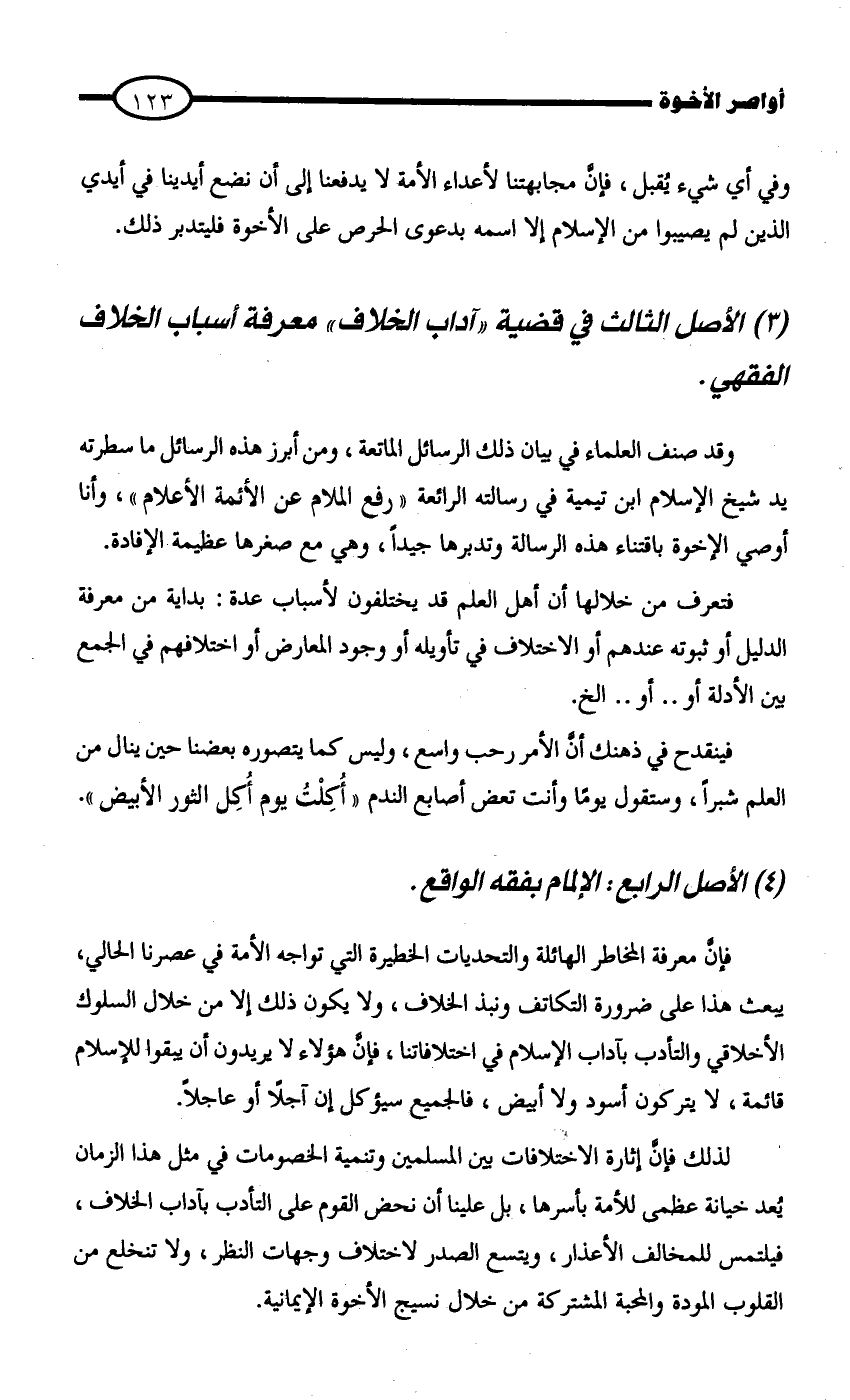 وقد صنف العلماء في بيان ذلك الرسائل الماتعة، ومن أبرز هذه الرسائل ما سطرته يد شيخ الإسلام ابن تيمية في رسالته الرائعة "رفع الملام عن الأئمة الأعلام"، وأنا أوصى الأخوة باقتناء هذه الرسالة وتدبرها جيداً، وهي مع صغرها عظيمة الإفادة.