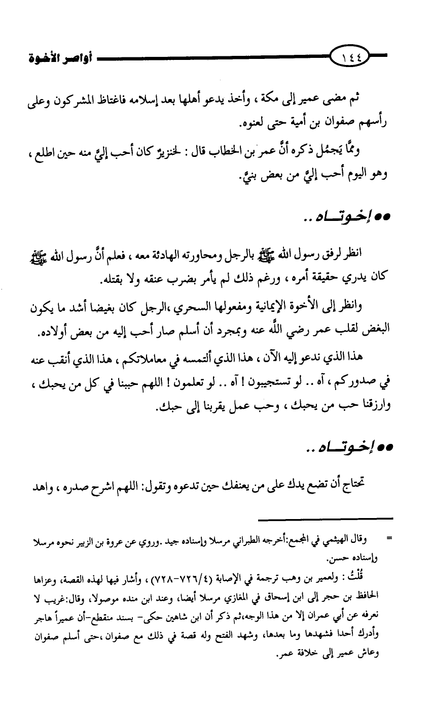 وانظر إلى الأخوة الإيمانية ومفعولها السحري، الرجل كان بغيضا أشد ما يكون البغض لقلب عمر - رضي الله عنه - وبمجرد أن أسلم صار أحب إليه من بعض أولاده.