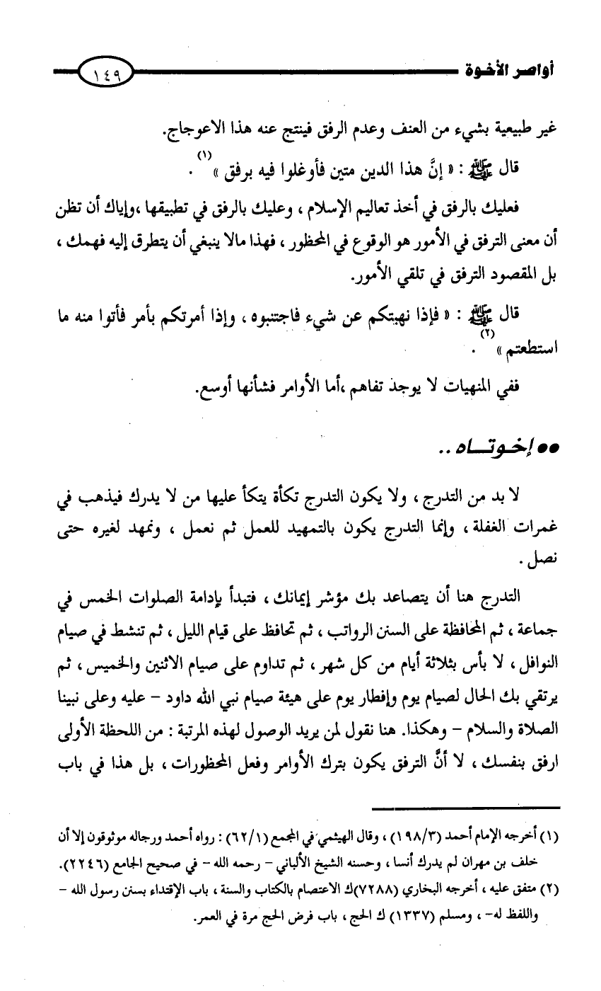 قال - صلى الله عليه وسلم - " إنَّ هذا الدين فأوغلوا فيه برفق " (¬1)