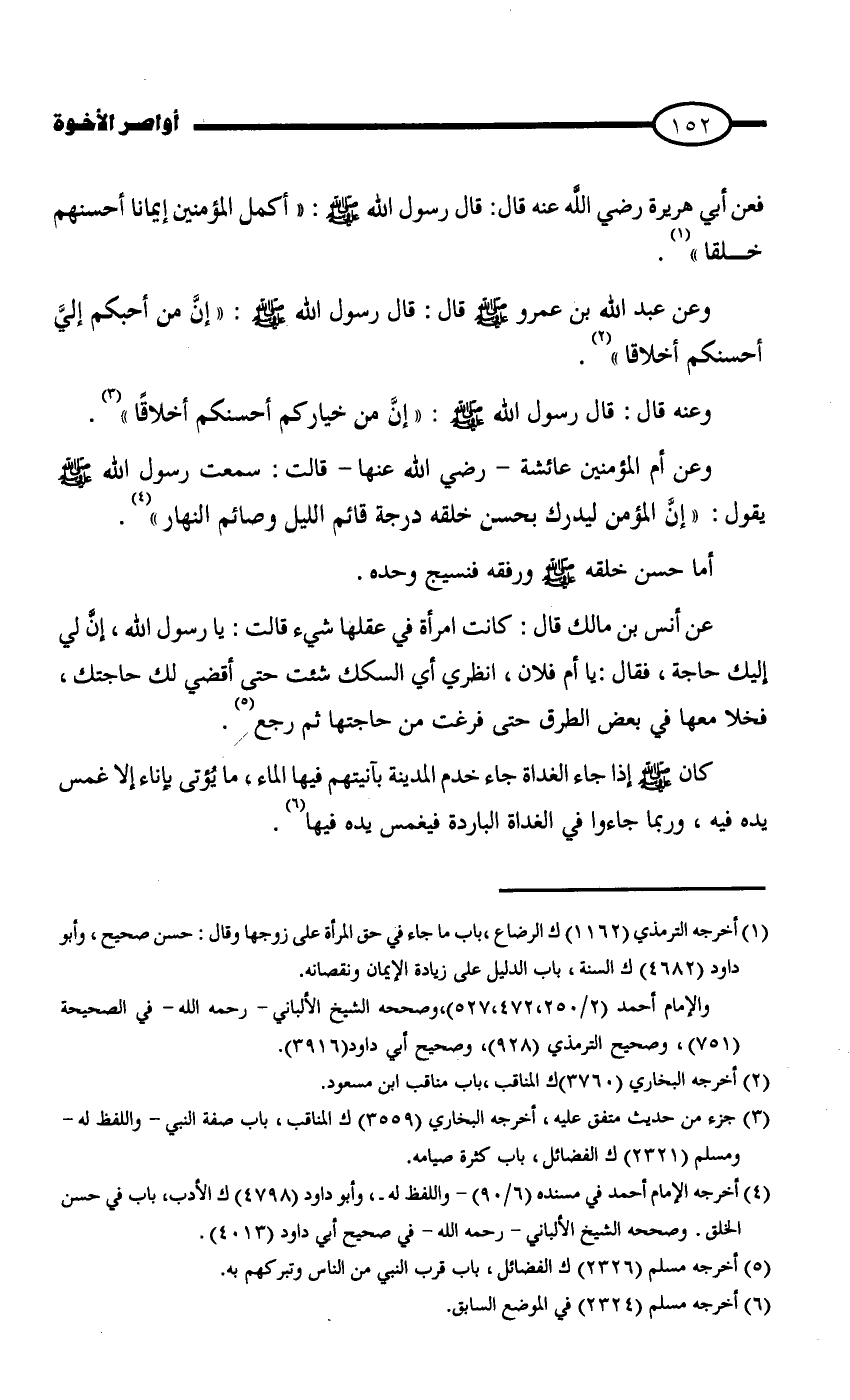 (¬4) أخرجه الإمام أحمد في مسنده (6/ 90) ـ واللفظ له ـ، وأبو داود (4798) ك الأدب، باب في حسن الخلق. وصححه الشيخ الألباني ـ رحمه الله ـ في صحيح أبي داود (4013).