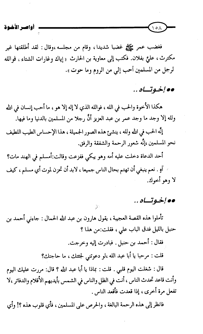 هكذا الأخوة والحب في الله، فوالله الذي لا إله إلا هو ما أحب إنسان في الله ولله إلا وجد ما وجد عمر بن عبد العزيز أنَّ رجلا من المسلمين بالدنيا وما فيها.