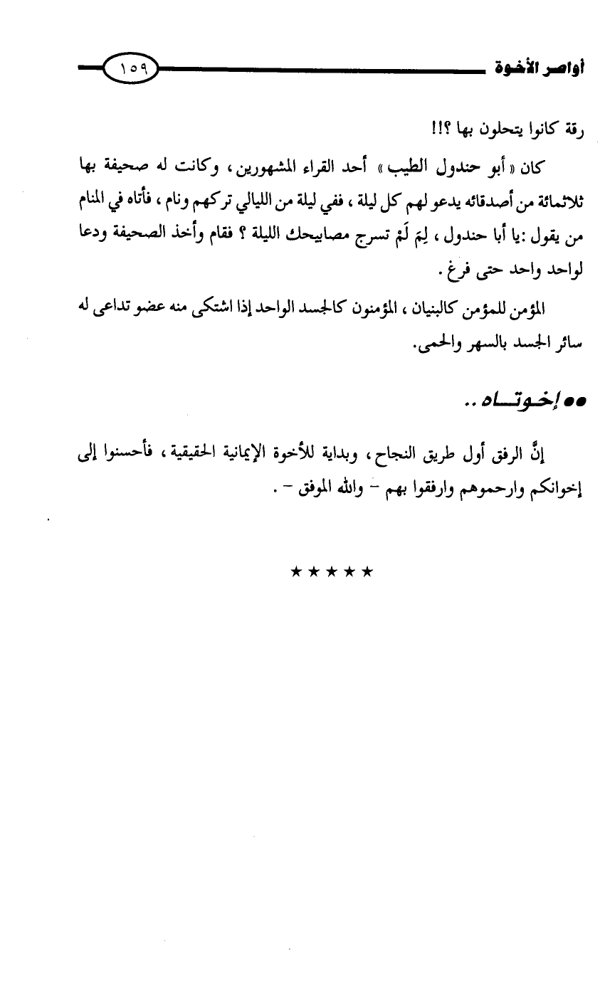المؤمن للمؤمن كالبنيان، المؤمنون كالجسد الواحد إذا اشتكى منه عضو تداعى له سائر الجسد بالسهر والحمى.