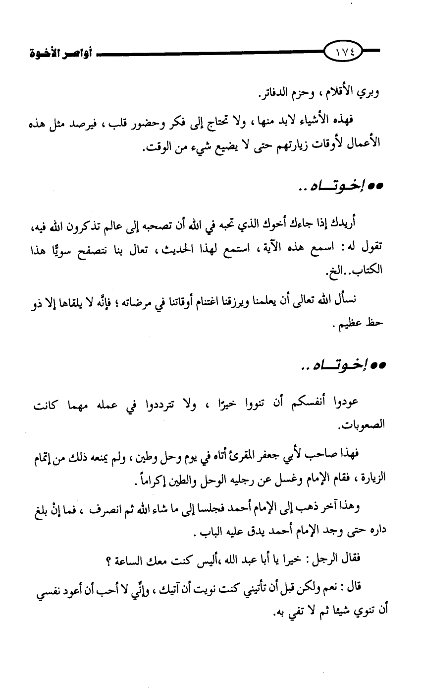 أريدك إذا جاءك أخوك الذي تحبه في الله أن تصحبه إلى عالم تذكرون الله فيه، تقول له: اسمع هذه الآية، استمع لهذا الحديث، تعال بنا نتصفح سوياً هذا الكتاب .. الخ.