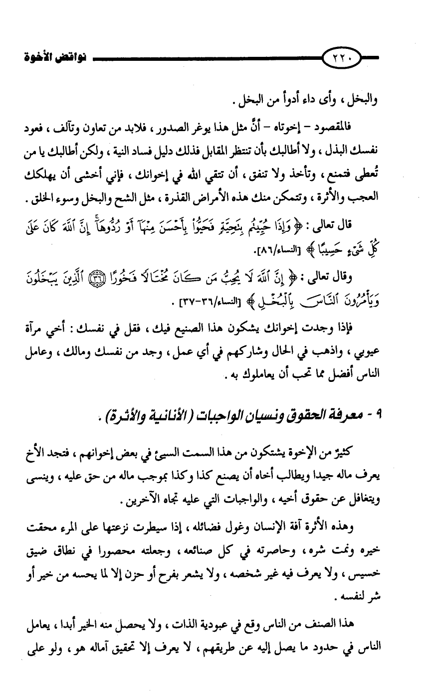 (9) معرفة الحقوق ونسيان الواجبات (الأنانية والأثرة) .....