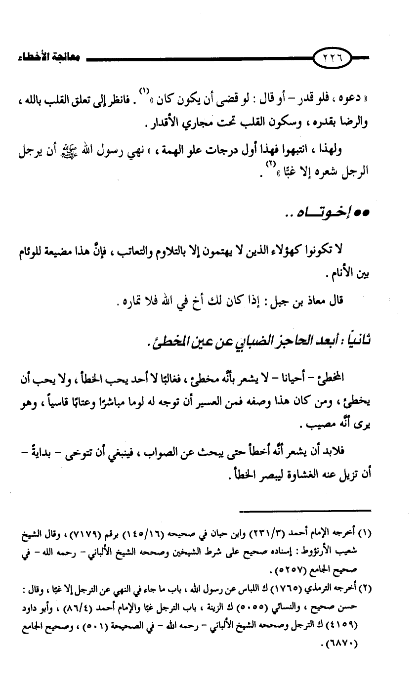 فلابد أن يشعر أنَّه أخطأ حتى يبحث عن الصواب، فينبغي أن تتوخى ـ بدايةً ـ أن تزيل عنه الغشاوة ليبصر الخطأ.