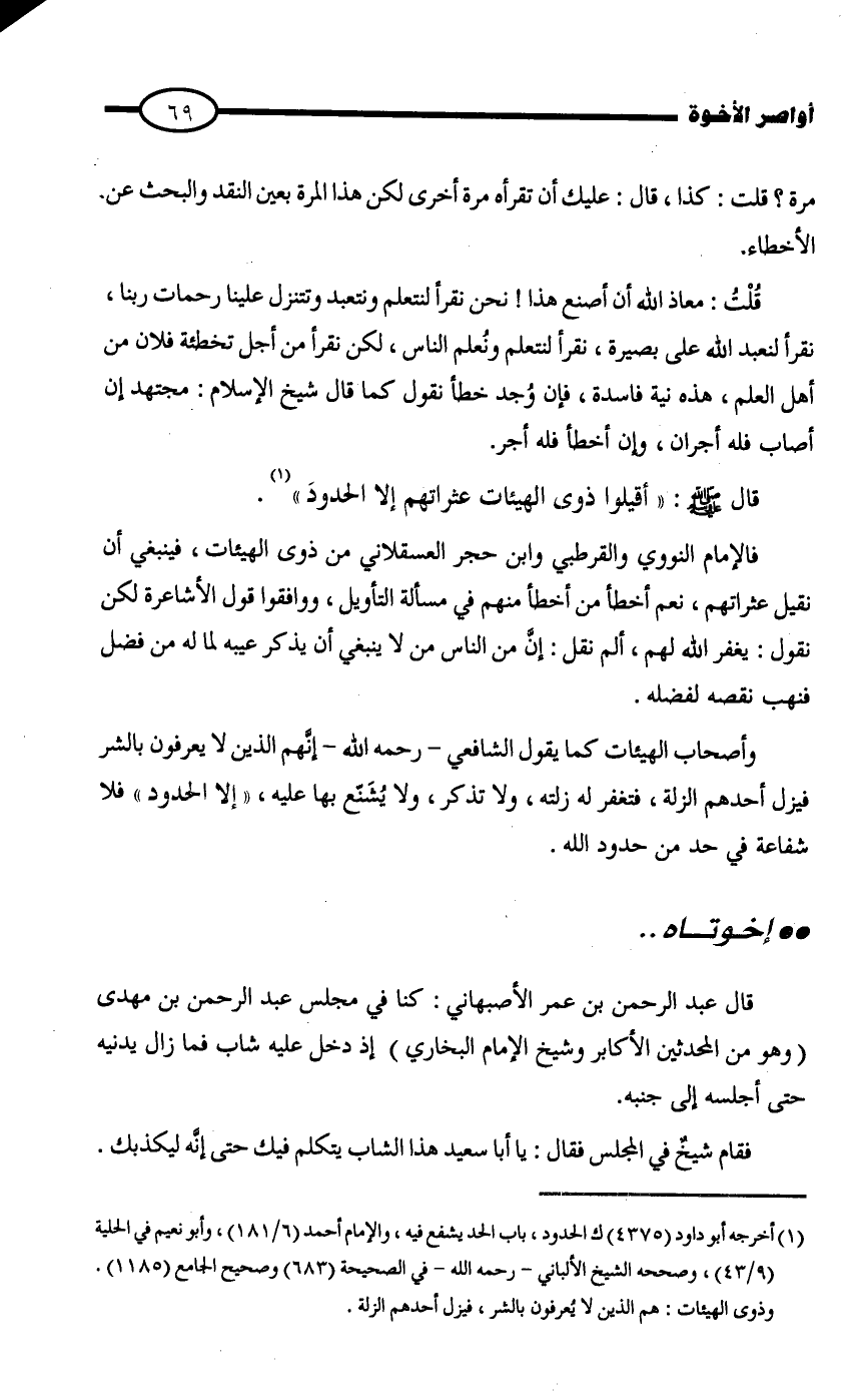 قال - صلى الله عليه وسلم -: " أقيلوا ذوى الهيئات عثراتهم إلا الحدود " (¬1)