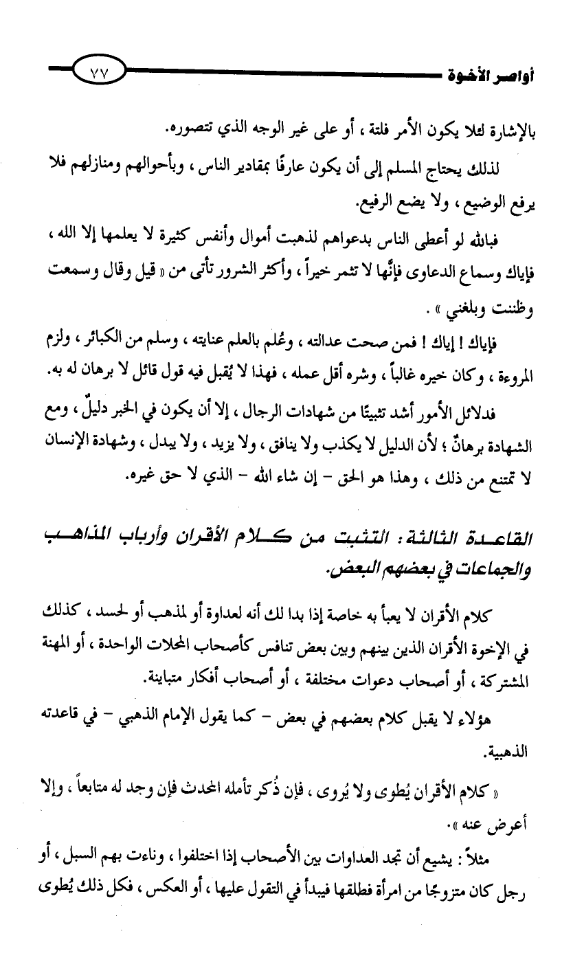القاعدة الثالثة: التثبت من كلام الأقران وأرباب المذاهب والجماعات في بعضهم البعض.