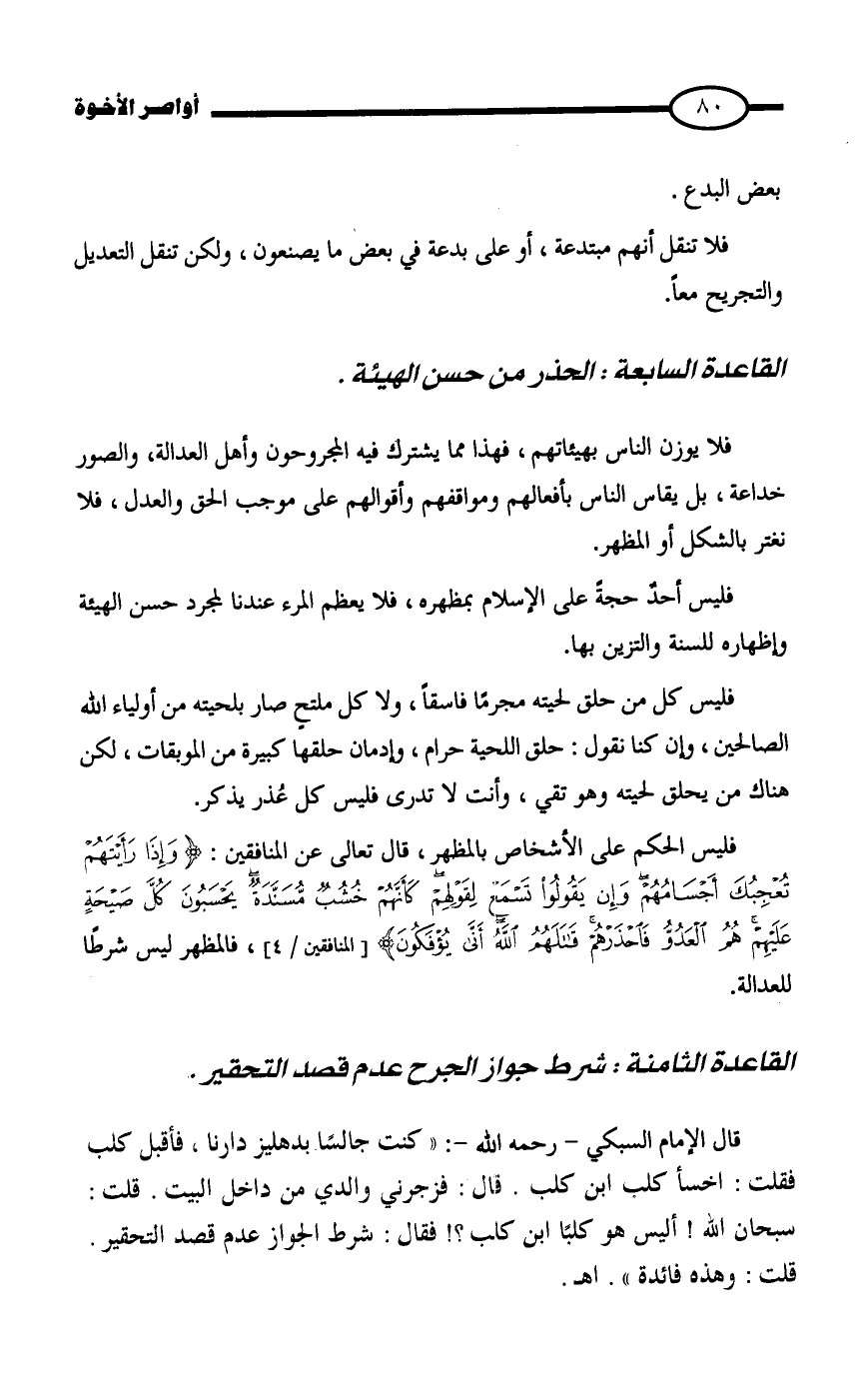 القاعدة السابعة: الحذر من حسن الهيئة.