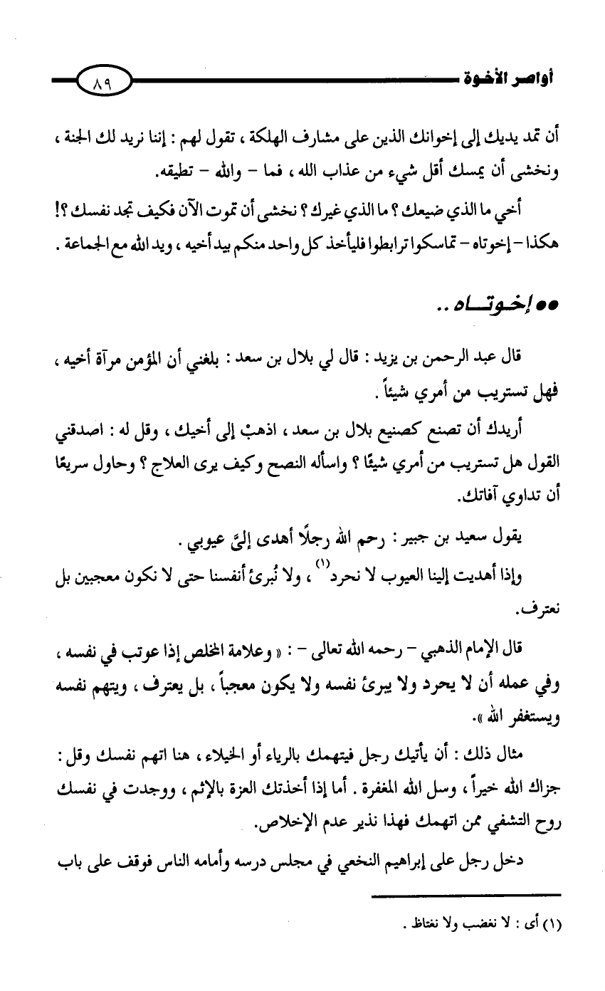 أخي ما الذي ضيعك؟ ما الذي غيرك؟ نخشى أن تموت الآن فكيف تجد نفسك؟! هكذا إخوتاه تماسكوا ترابطوا فليأخذ كل واحد منكم بيد أخيه، ويد الله مع الجماعة.
