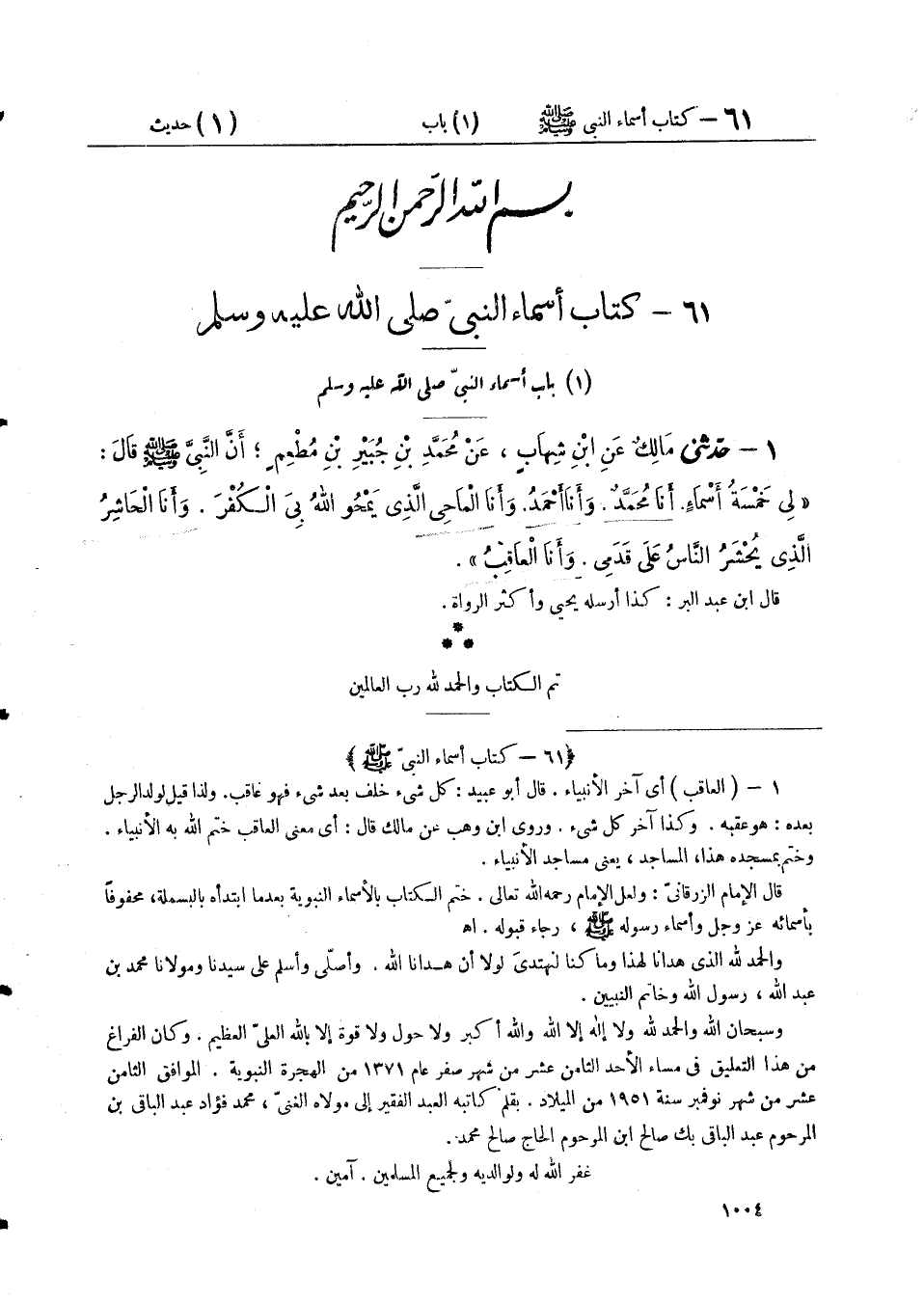 ٦١ - كِتَابُ أَسْمَاءِ النَّبِيِّ صَلَّى اللهُ عَلَيْهِ وَسَلَّمَ
