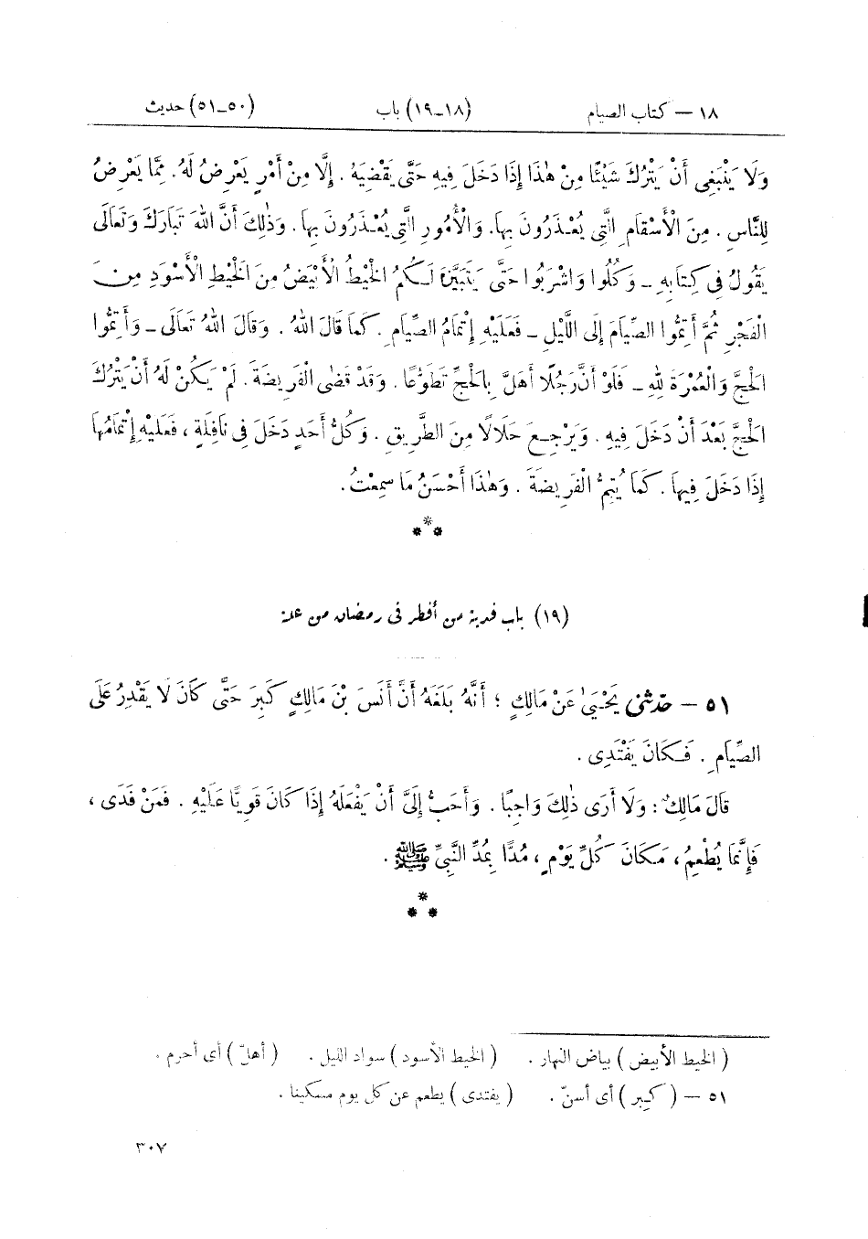 ٥١ - حَدَّثَنِي يَحْيَى، عَنْ مَالِكٍ أَنَّهُ بَلَغَهُ، أَنَّ أَنَسَ بْنَ مَالِكٍ «كَبِرَ حَتَّى كَانَ لَا يَقْدِرُ عَلَى الصِّيَامِ. فَكَانَ يَفْتَدِي» قَالَ مَالِكٌ: «وَلَا أَرَى ذَلِكَ وَاجِبًا. وَأَحَبُّ إِلَيَّ أَنْ يَفْعَلَهُ إِذَا كَانَ قَوِيًّا عَلَيْهِ. فَمَنْ فَدَى فَإِنَّمَا يُطْعِمُ مَكَانَ كُلِّ يَوْمٍ مُدًّا بِمُدِّ النَّبِيِّ صَلَّى اللهُ عَلَيْهِ وَسَلَّمَ»