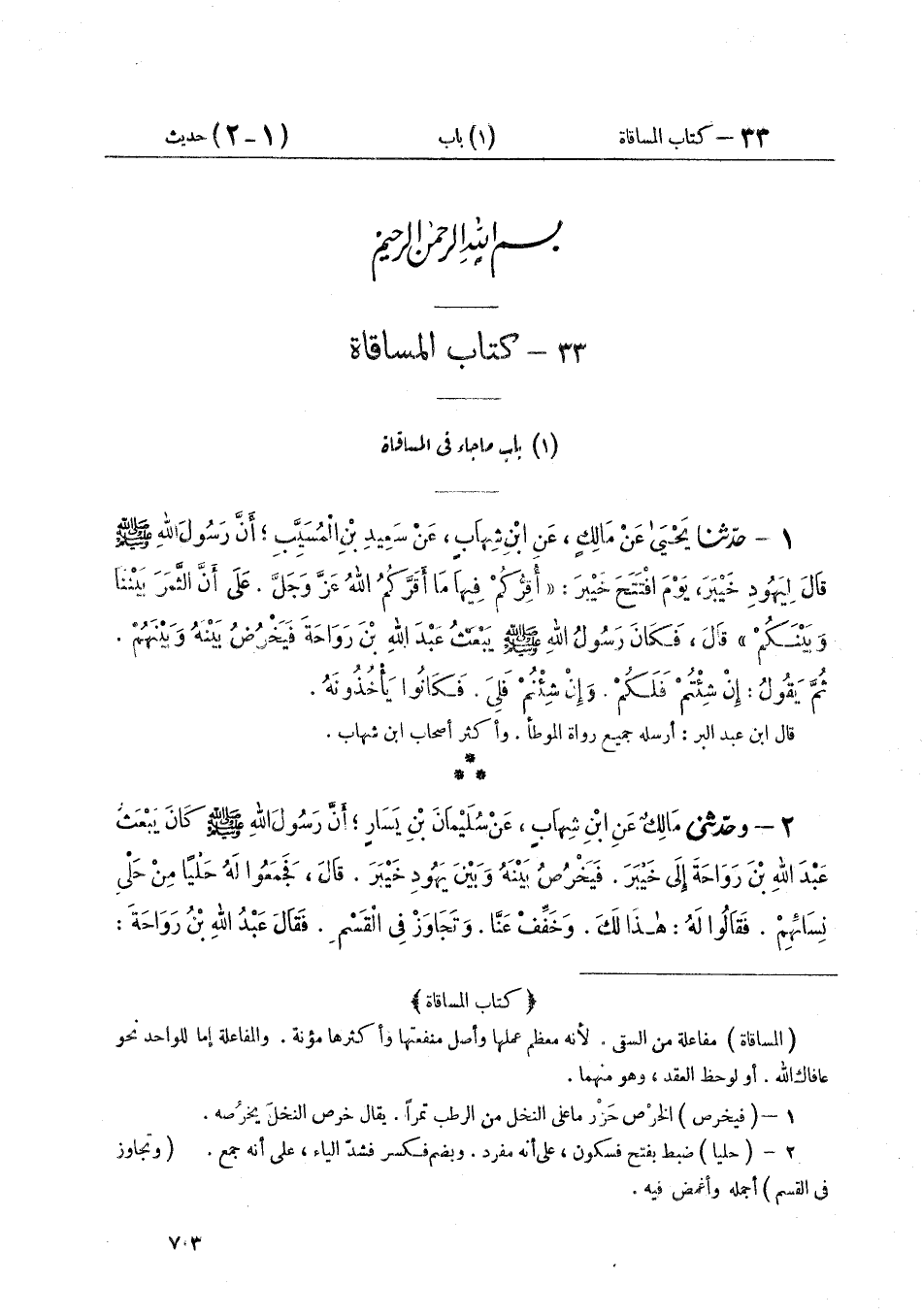 ٣٣ - كِتَابُ الْمُسَاقَاةِ