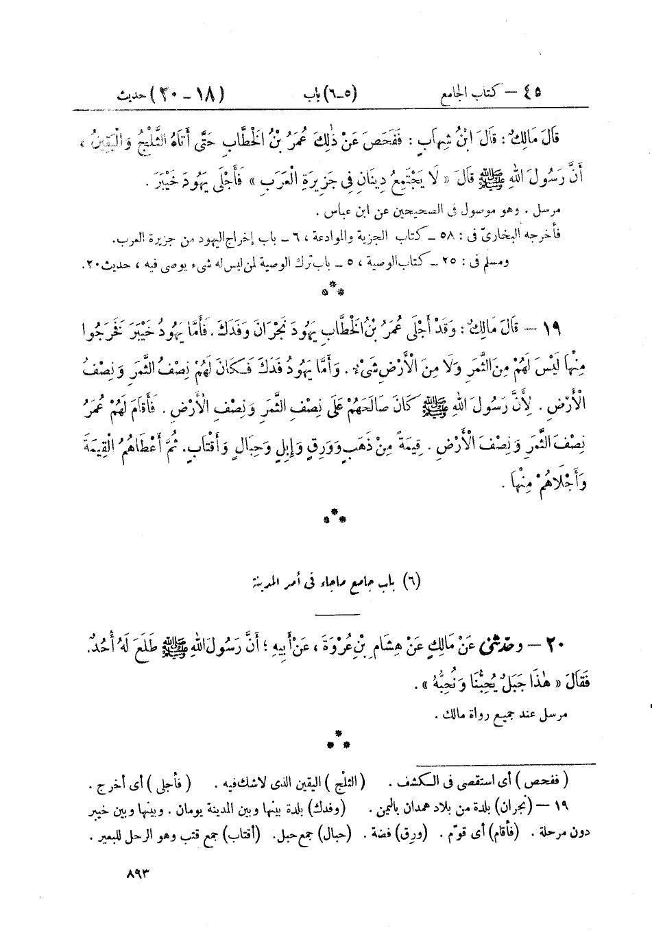 ٢٠ - وَحَدَّثَنِي عَنْ مَالِكٍ، عَنْ هِشَامِ بْنِ عُرْوَةَ، عَنْ أَبِيهِ، أَنَّ رَسُولَ اللَّهِ صَلَّى اللهُ عَلَيْهِ وَسَلَّمَ طَلَعَ لَهُ أُحُدٌ فَقَالَ: «هَذَا جَبَلٌ يُحِبُّنَا وَنُحِبُّهُ»