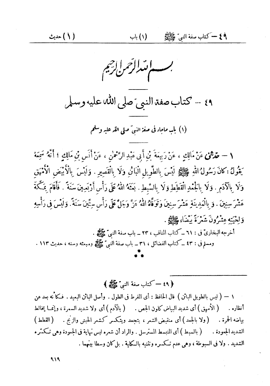 ٤٩ - كِتَابُ صِفَةِ النَّبِيِّ صَلَّى اللهُ عَلَيْهِ وَسَلَّمَ