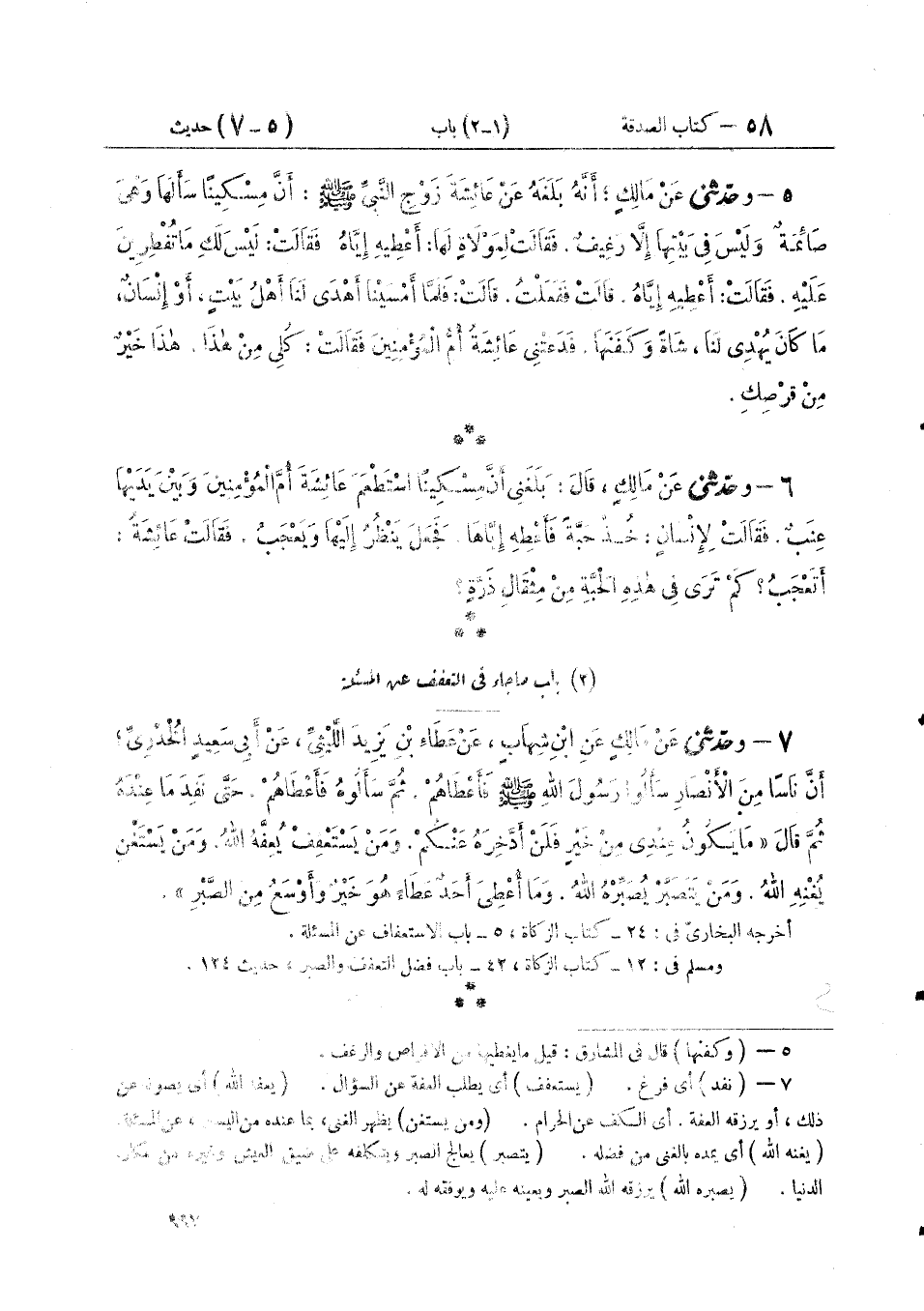 ٧ - وَحَدَّثَنِي عَنْ مَالِكٍ، عَنْ ابْنِ شِهَابٍ، عَنْ عَطَاءِ بْنِ يَزِيدَ اللَّيْثِيِّ، عَنْ أَبِي سَعِيدٍ الْخُدْرِيِّ، أَنَّ نَاسًا مِنَ الْأَنْصَارِ سَأَلُوا رَسُولَ اللَّهِ صَلَّى اللهُ عَلَيْهِ وَسَلَّمَ فَأَعْطَاهُمْ، ثُمَّ سَأَلُوهُ فَأَعْطَاهُمْ، حَتَّى نَفِدَ مَا عِنْدَهُ، ثُمَّ قَالَ: «مَا يَكُونُ عِنْدِي مِنْ خَيْرٍ فَلَنْ أَدَّخِرَهُ عَنْكُمْ، وَمَنْ يَسْتَعْفِفْ يُعِفَّهُ اللَّهُ، وَمَنْ يَسْتَغْنِ يُغْنِهِ اللَّهُ، وَمَنْ يَتَصَبَّرْ يُصَبِّرْهُ اللَّهُ، وَمَا أُعْطِيَ أَحَدٌ عَطَاءً هُوَ خَيْرٌ وَأَوْسَعُ مِنَ الصَّبْرِ»