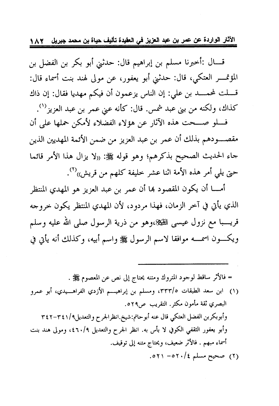 فلو صحت هذه الآثار عن هؤلاء الفضلاء لأمكن حملها على أن مقصودهم بذلك أن عمر بن عبد العزيز من ضمن الأئمة المهديين الذين جاء الحديث الصحيح بذكرهم، وهو قوله صلى الله عليه وسلم: "لا يزال هذا الأمر قائما حتى يلي أمر هذه الأمة اثنا عشر خليفة كلهم من قريش"1.