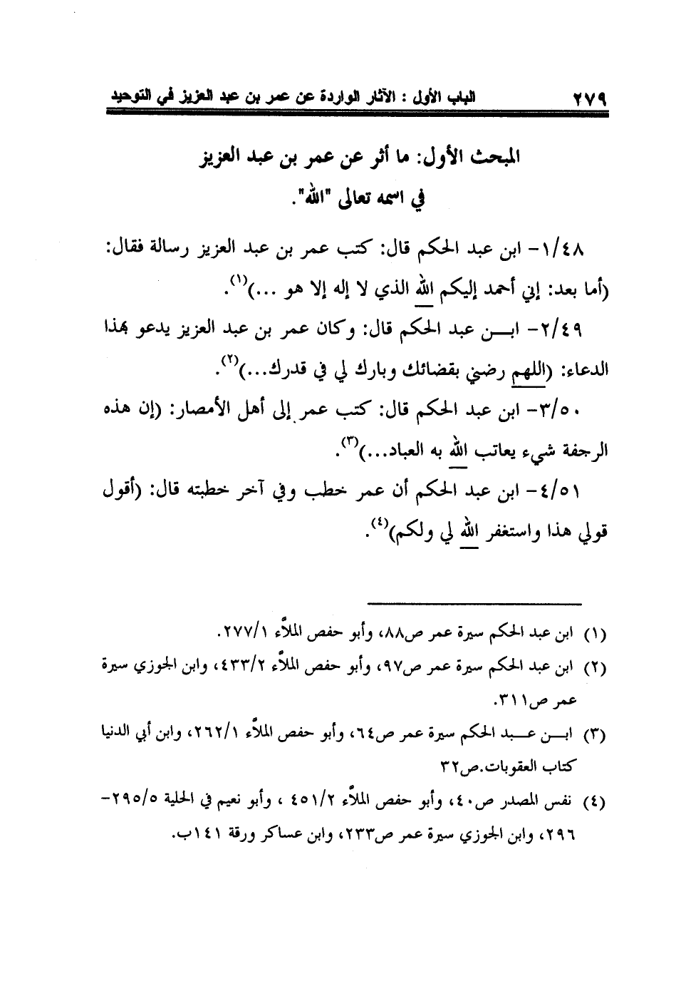 المبحث الأول: ما أثر عن عمر بن عبد العزيز في اسمه تعالى "الله".