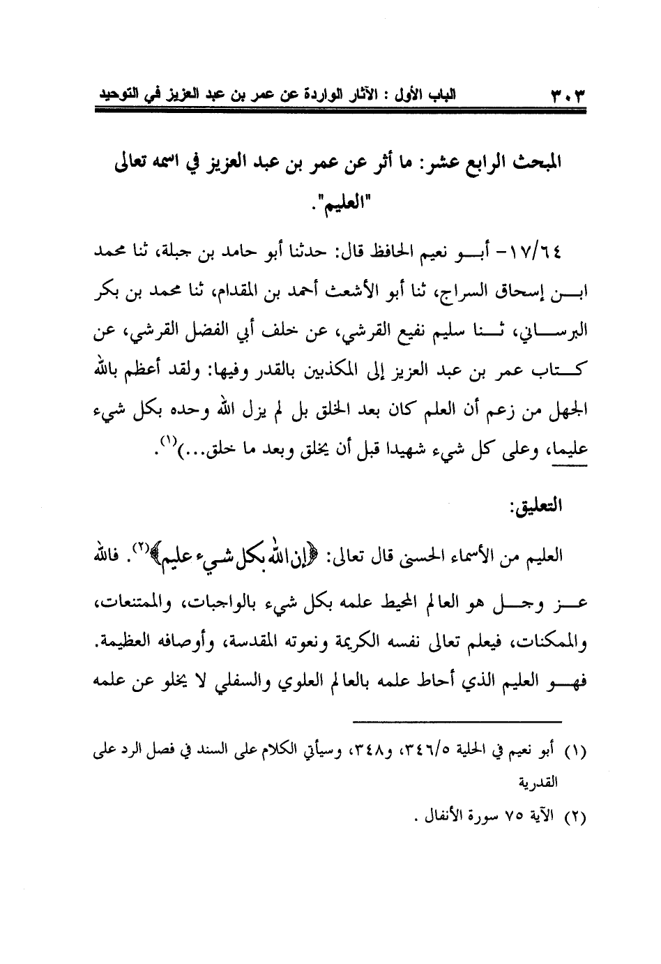 المبحث الرابع عشر: ما أثر عن عمر بن عبد العزيز في اسمه تعالى "العليم".