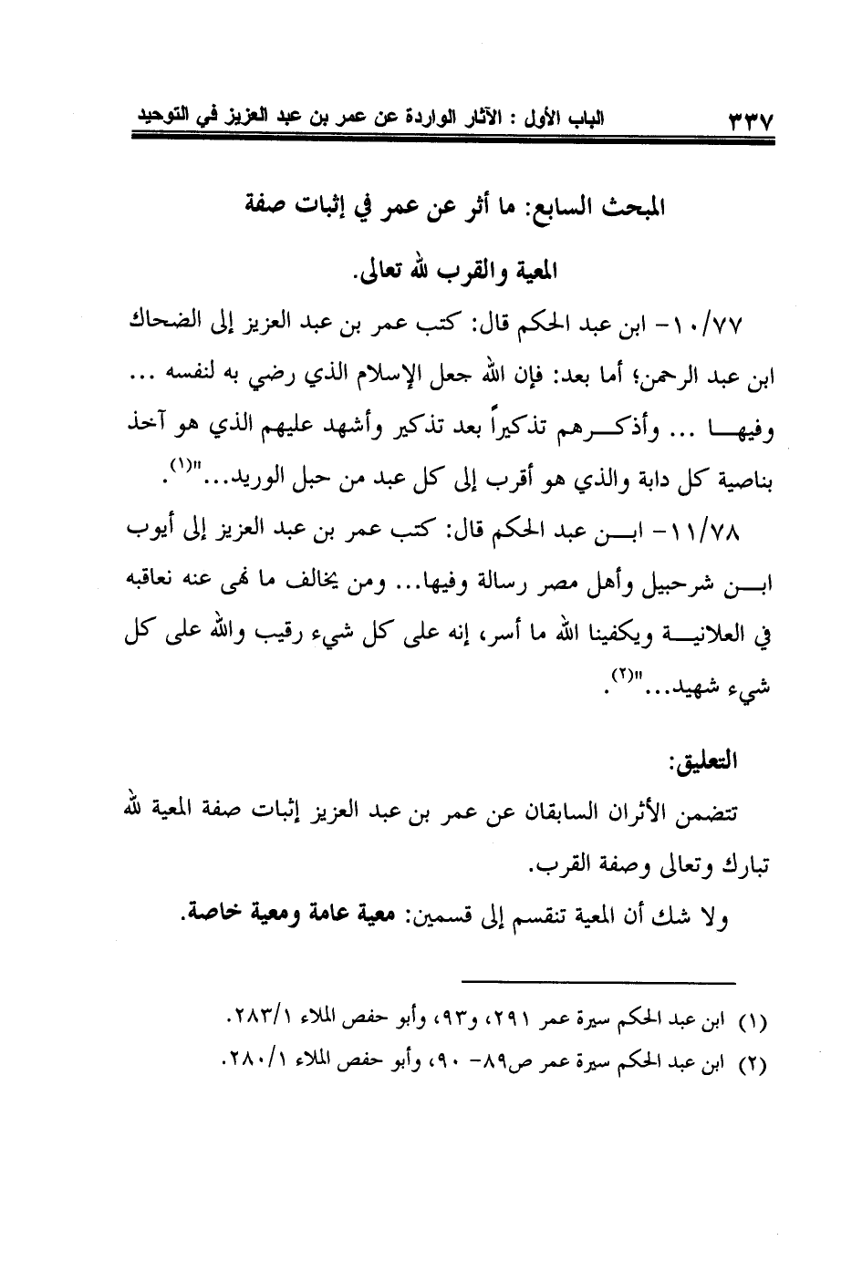 تتضمن الأثران السابقان عن عمر بن عبد العزيز إثبات صفة المعية لله تبارك وتعالى وصفة القرب.