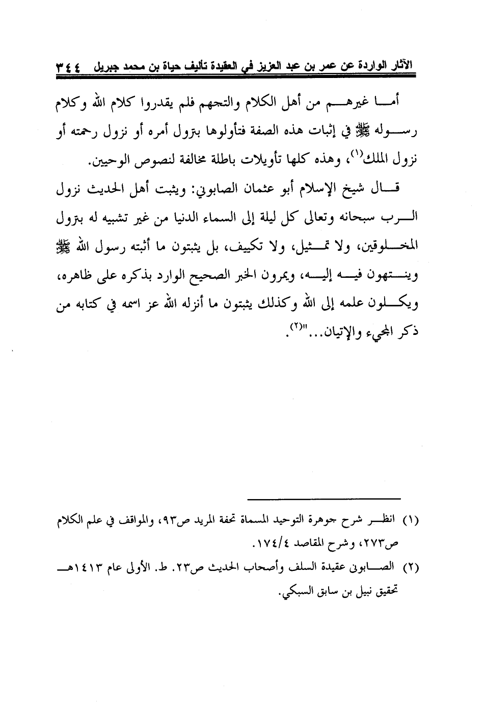 2 الصابونى عقيدة السلف وأصحاب الحديث ص23. ط. الأولى عام 1413هـ تحقيق نبيل بن سابق السبكي.