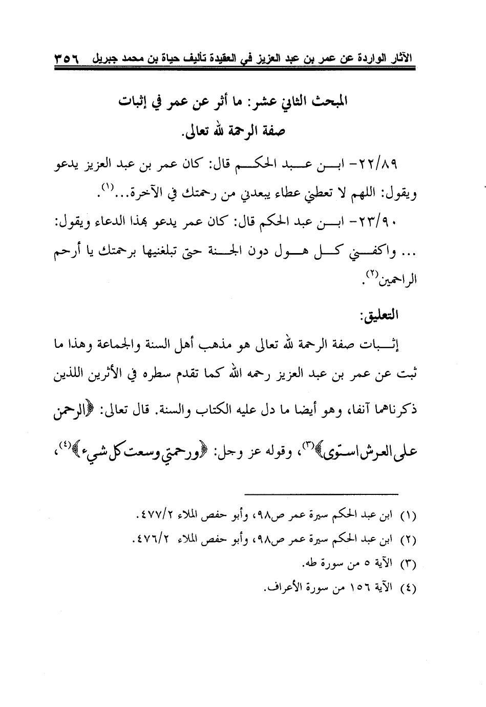 المبحث الثاني عشر: ما أثر عن عمر في إثبات صفة الرحمة لله تعالى.