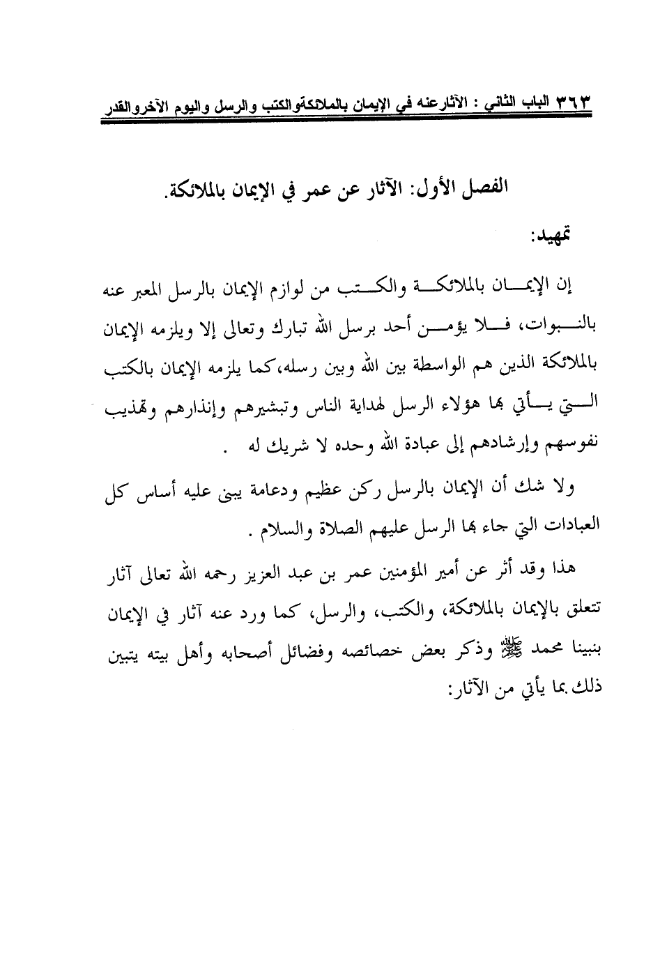 الباب الثاني: الآثار عن عمر في الإيمان بالملائكة والكتب، والرل، واليوم الآخر، والقدر