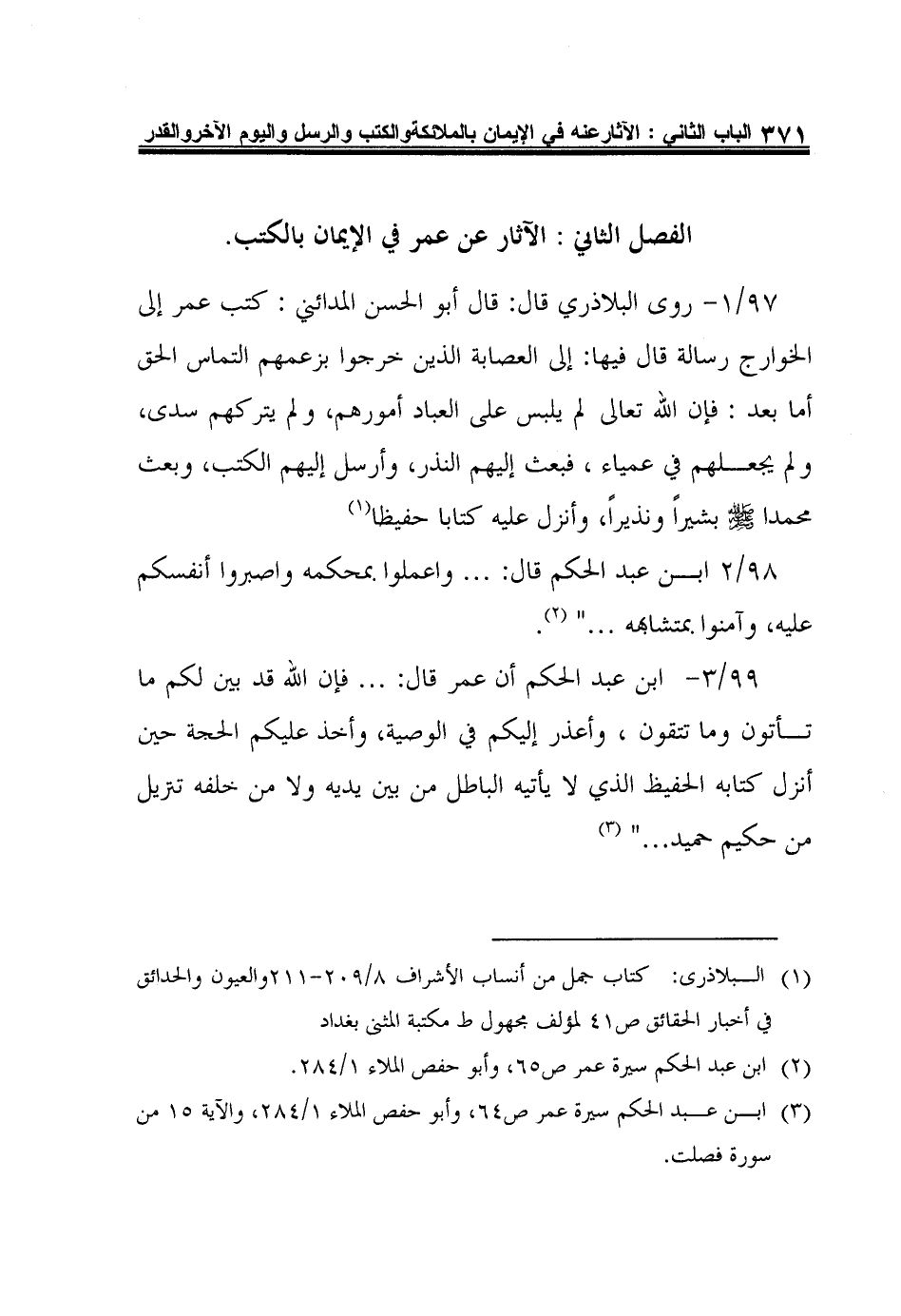 الفصل الثاني: الآثار عن عمر في الإيمان بالكتب.