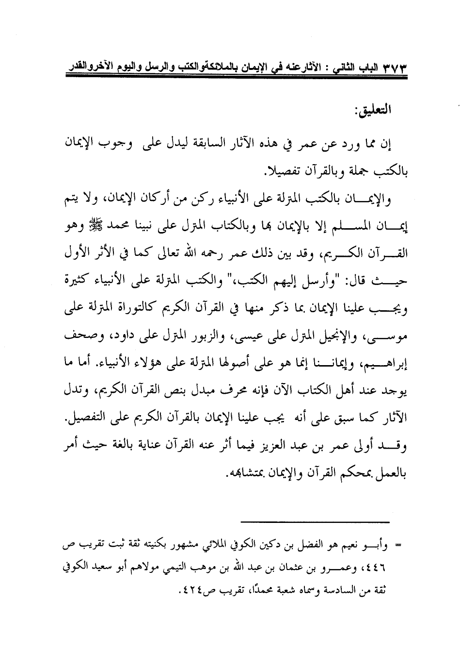 إن مما ورد عن عمر في هذه الآثار السابقة ليدل على وجوب الإيمان بالكتب جملة وبالقرآن تفصيلا.