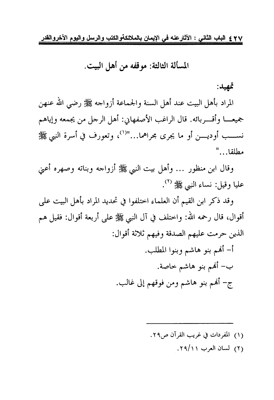 ج- أنهم بنو هاشم ومن فوقهم إلى غالب.