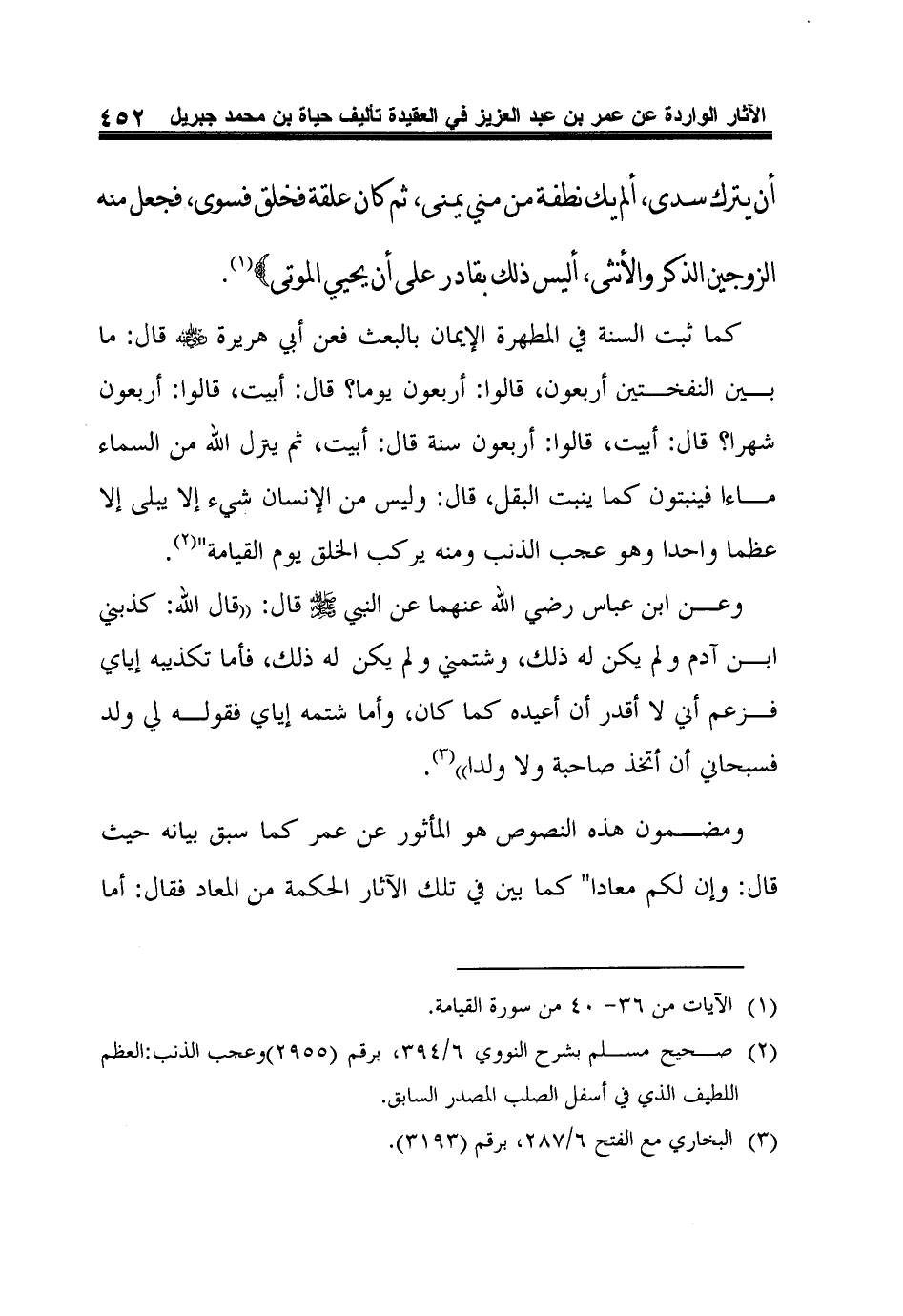 2 صحيح مسلم بشرح النووي 6/394، برقم (2955) وعجب الذنب: العظم اللطيف الذي في أسفل الصلب المصدر السابق.