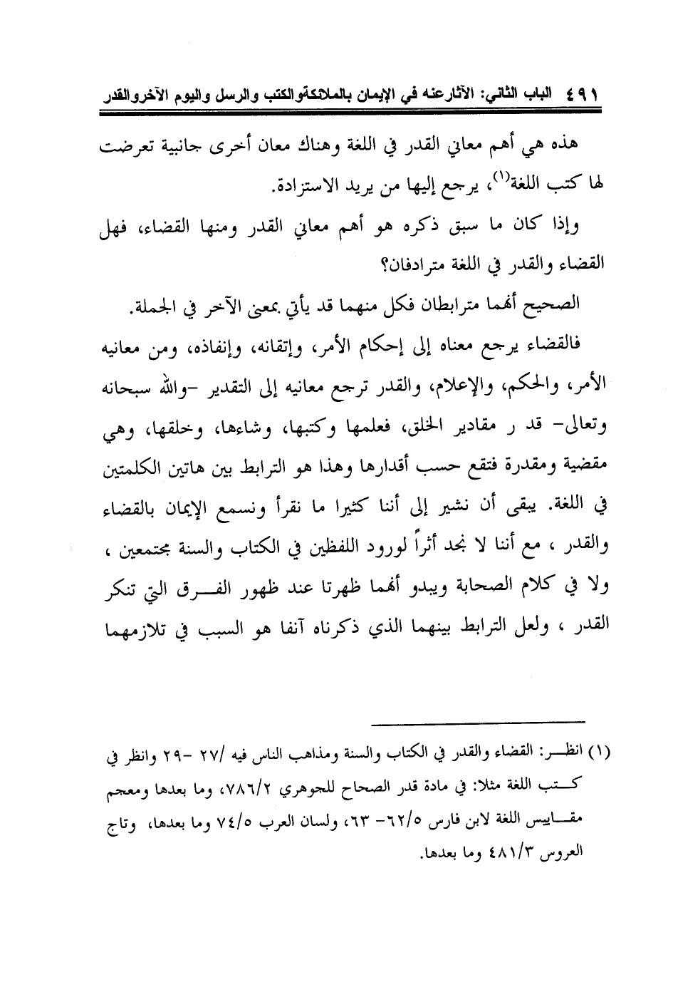 1 انظر: القضاء والقدر في الكتاب والسنة ومذاهب الناس فيه /27 -29 وانظر في كتب اللغة مثلا: في مادة قدر الصحاح للجوهري 2/786، وما بعدها ومعجم مقاييس اللغة لابن فارس 5/62- 63، ولسان العرب 5/74 وما بعدها، وتاج العروس 3/481 وما بعدها.