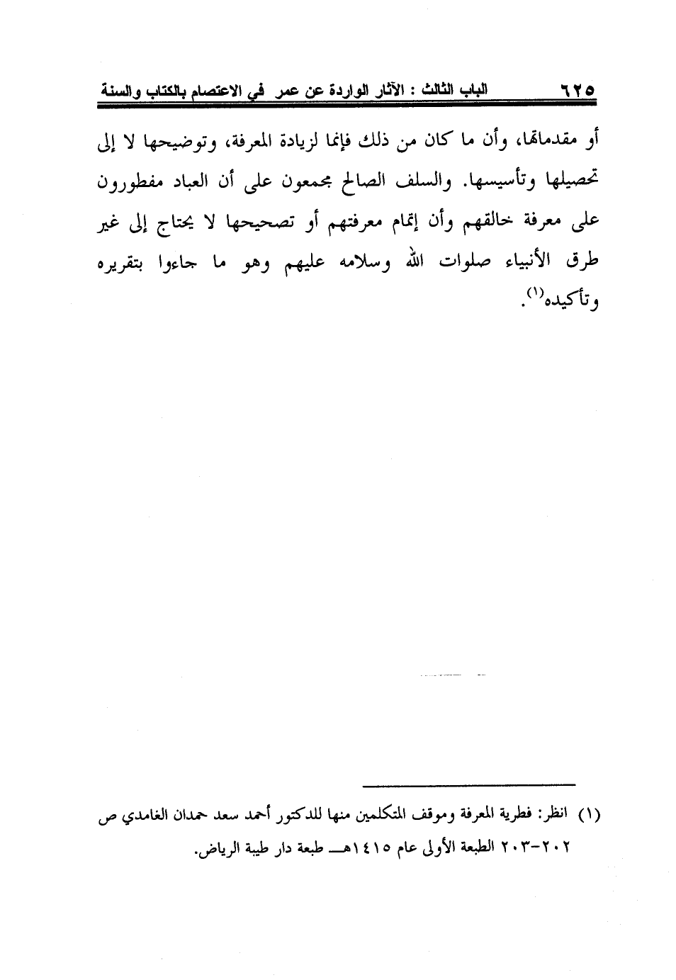 1 انظر: فطرية المعرفة وموقف المتكلمين منها للدكتور أحمد سعد حمدان الغامدي ص202-203 الطبعة الأولى عام 1415هـ طبعة دار طيبة الرياض