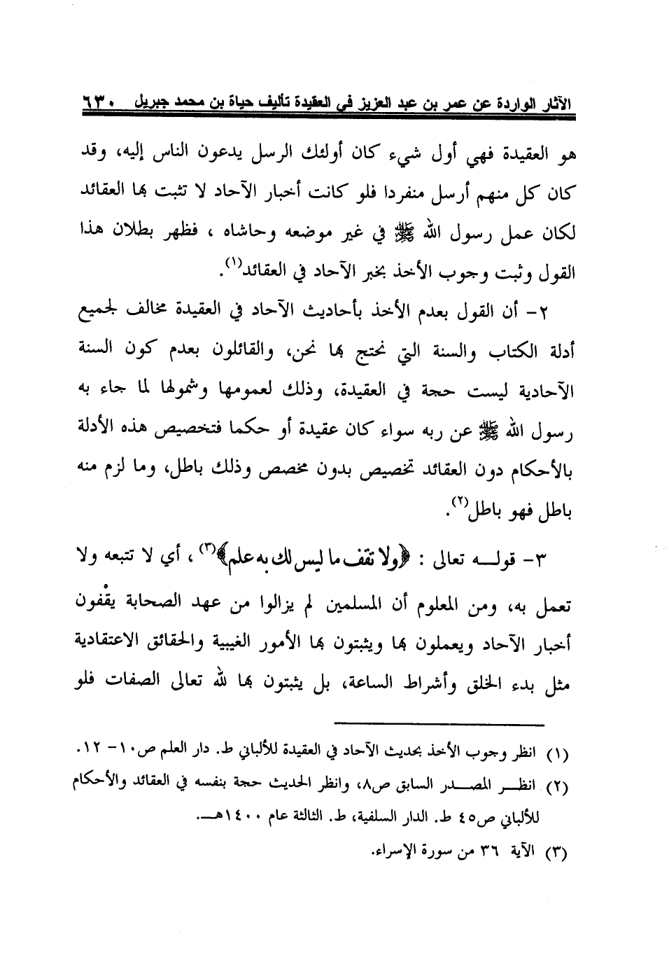 1 انظر وجوب الأخذ بحديث الآحاد في العقيدة للألباني ط. دار العلم ص10- 12.
