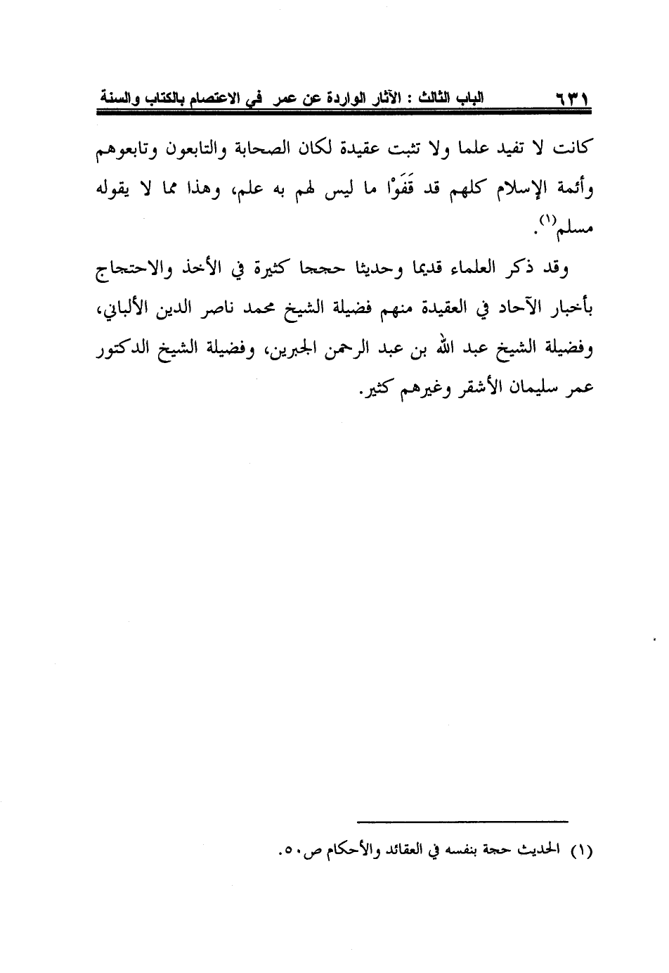 1 الحديث حجة بنفسه في العقائد والأحكام ص50.
