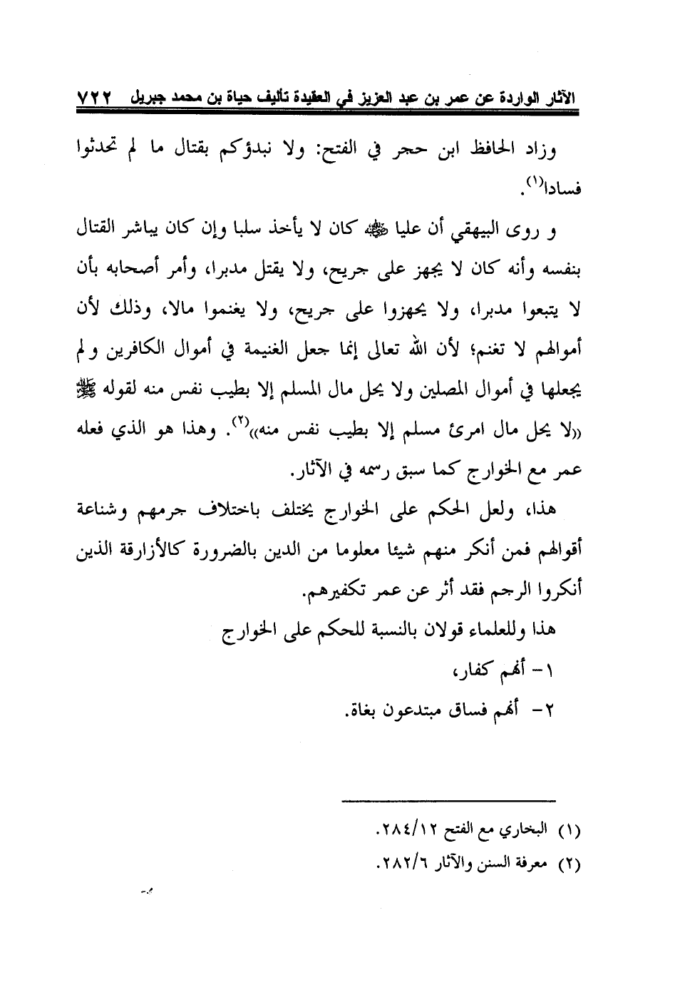 هذا وللعلماء قولان بالنسبة للحكم على الخوارج: