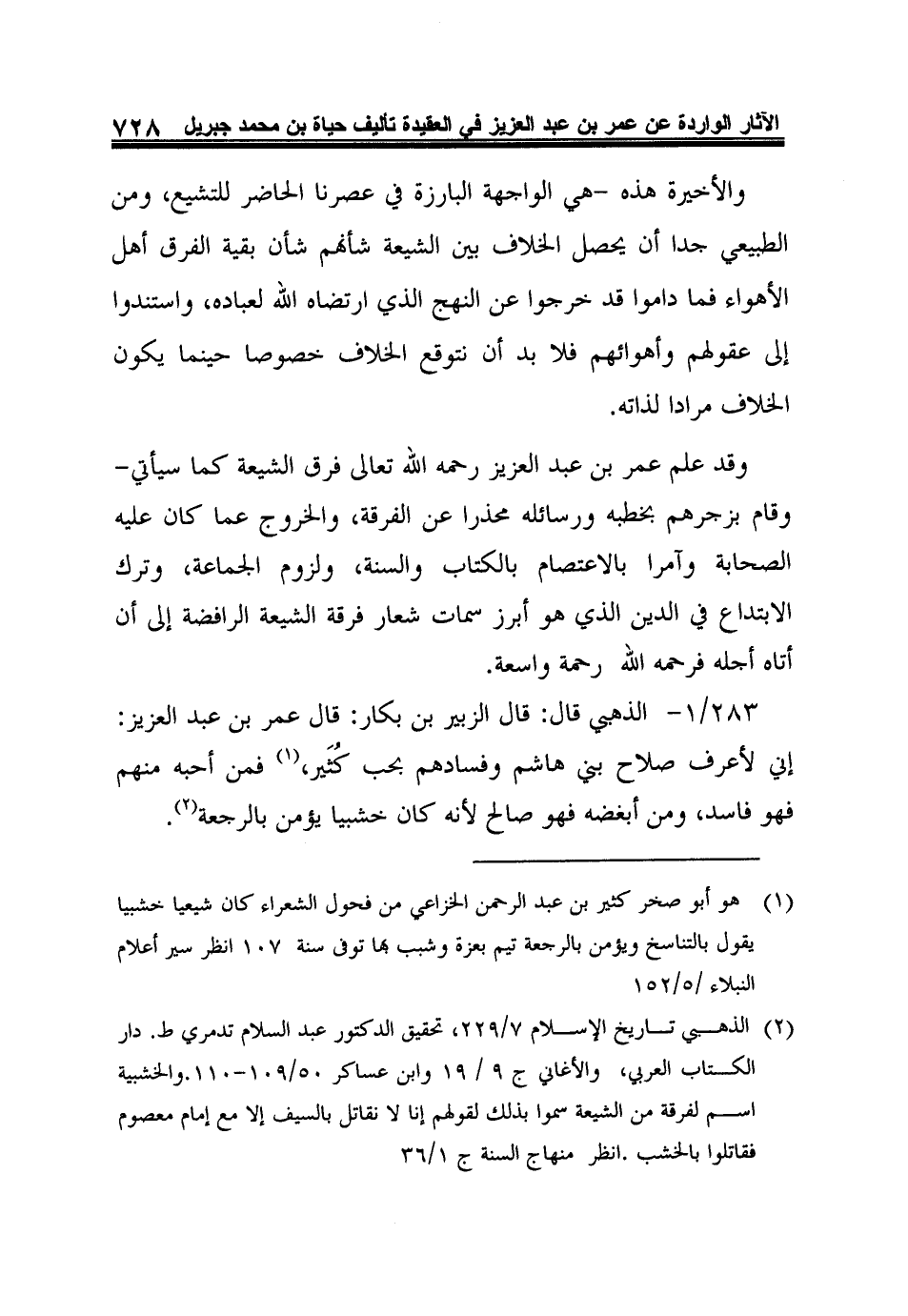 283/1- الذهبي قال: قال الزبير بن بكار: قال عمر بن عبد العزيز: إني لأعرف صلاح بني هاشم وفسادهم بحب كُثَير1، فمن أحبه منهم فهو فاسد، ومن أبغضه فهو صالح لأنه كان خشبيا يؤمن بالرجعة2.