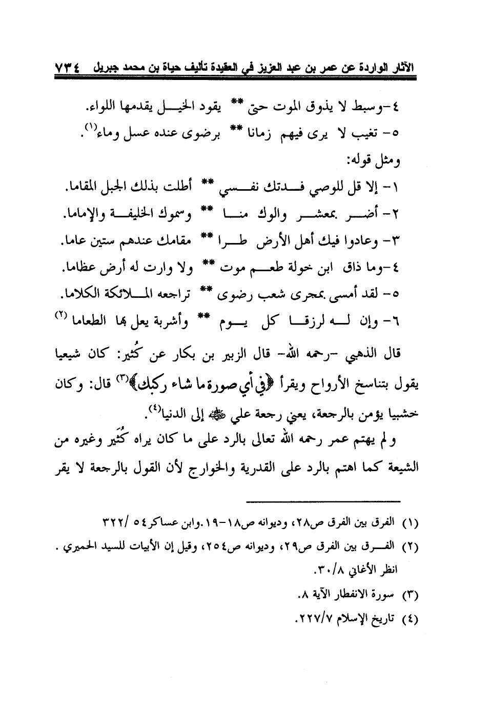 ولم يهتم عمر رحمه الله تعالى بالرد على ما كان يراه كُثَير وغيره من الشيعة كما اهتم بالرد على القدرية والخوارج لأن القول بالرجعة لا يقر