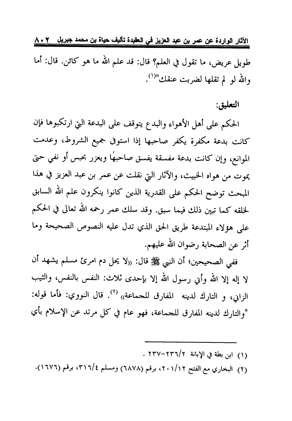 كتاب الآثار الواردة عن عمر بن عبد العزيز في العقيدة (اسم الجزء: 2)
