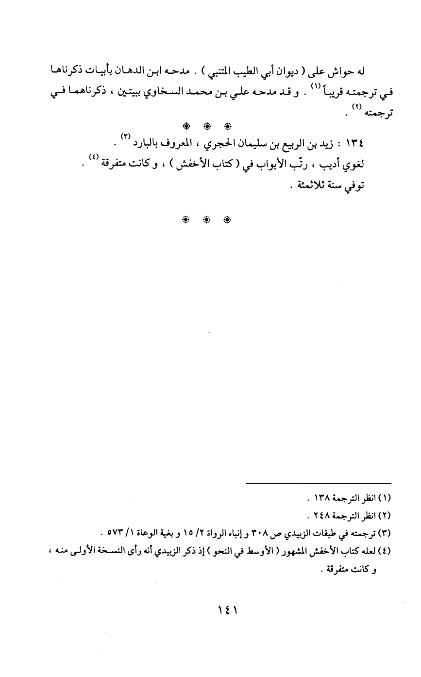 4 لعله كتاب الأخفش المشهور "الأوسط في النحو" إذ ذكر الزبيدي أنه رأى النسخة الأولى منه، وكانت متفرقة.