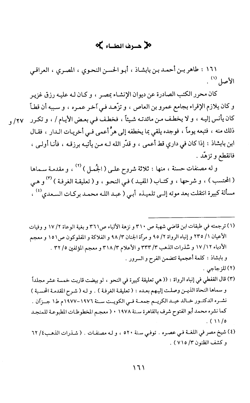 161- طاهر بن أحمد بن بابشاذ، أبو الحسن النحوي، المصري، العراقي الأصل1.