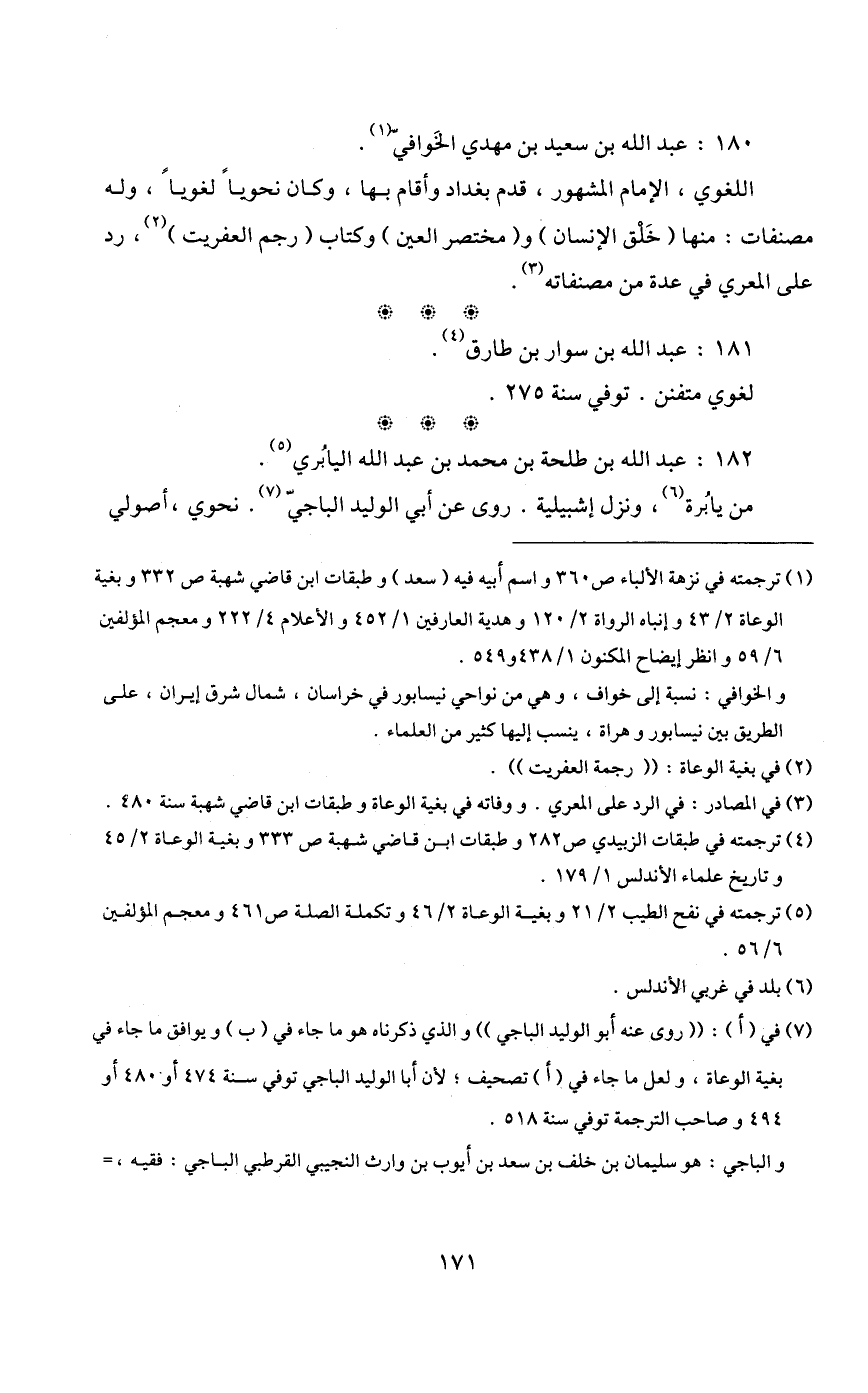 4 ترجمته في طبقات الزبيدي ص28 وطبقات ابن قاضي شهبة ص333 وبغية الوعاة 2/ 45 وتاريخ علماء الأندلس 1/ 179.