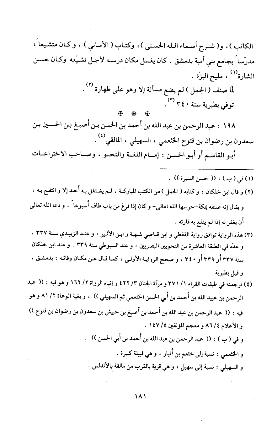 198- عبد الرحمن بن عبد الله بن أحمد بن الحسن بن أصبغ بن الحسين بن سعدون بن رضوان بن فتوح الخثعمي، السهيلي، المالقي4.