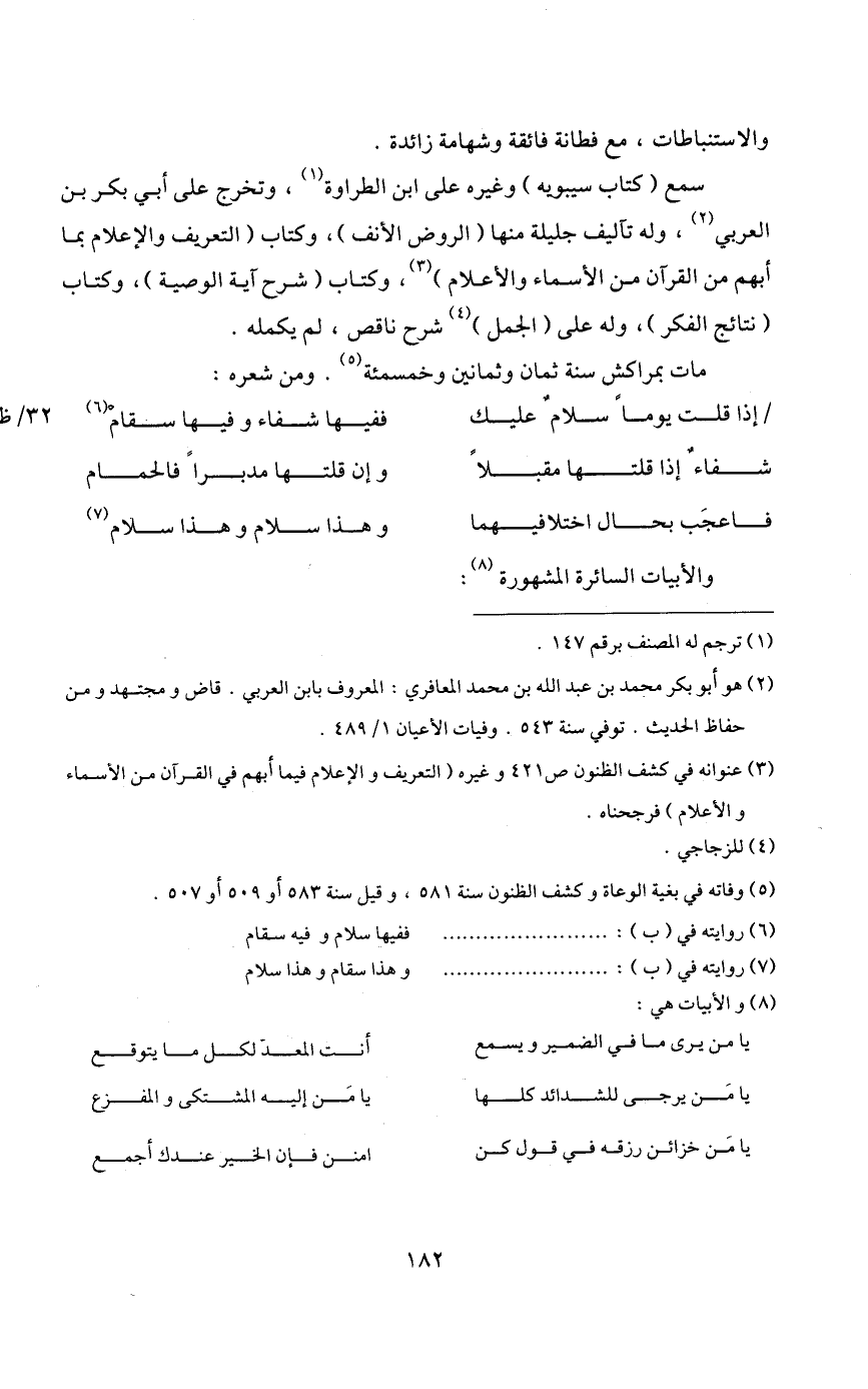 2 هو أبو بكر محمد بن عبد الله بن محمد المعافري: المعروف بابن العربي. قاض ومجتهد ومن حفاظ الحديث. توفي سنة 543. وفيات الأعيان 1/ 489.