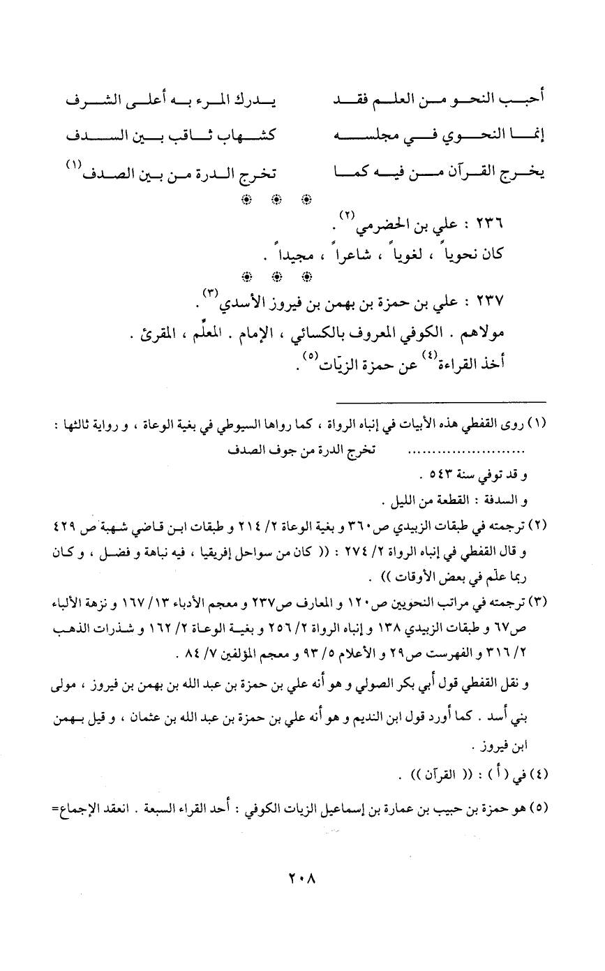 1 روى القفطي هذه الأبيات في إنباه الرواة، كما رواها السيوطي في بغية الوعاة، ورواية ثالثها: