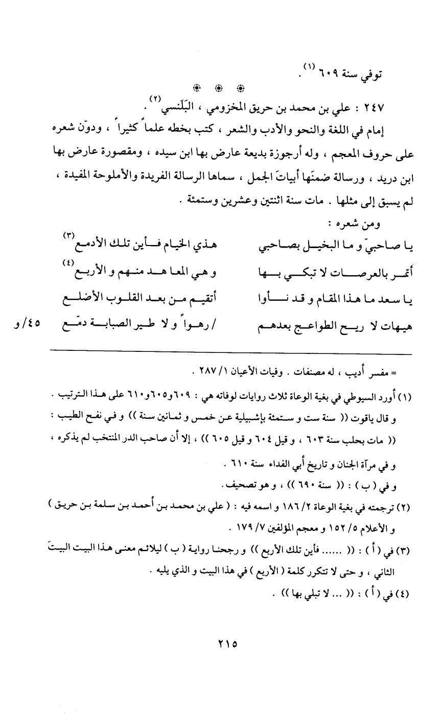 2 ترجمته في بغية الوعاة 2/ 186 واسمه فيه: "علي بن محمد بن أحمد بن سلمة بن حريق" والأعلام 5/ 152 ومعجم المؤلفين 7 / 179.