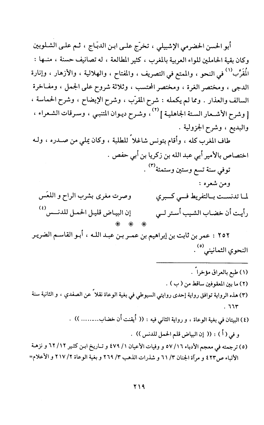 252- عمر بن ثابت بن إبراهيم بن عمر بن عبد الله، أبو القاسم الضرير النحوي الثمانيني5.