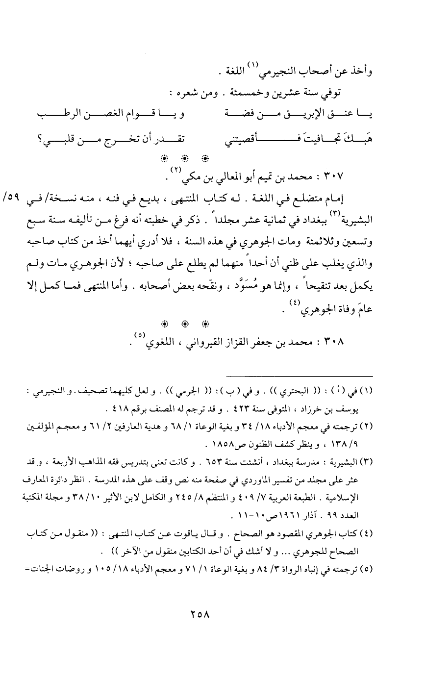 1 في "أ": "البحتري". وفي "ب": "الجرمي" ولعل كليهما تصحيف. والنجيرمي: يوسف بن خرزاد، المتوفى سنة 423. وقد ترجم له المصنف برقم 418.