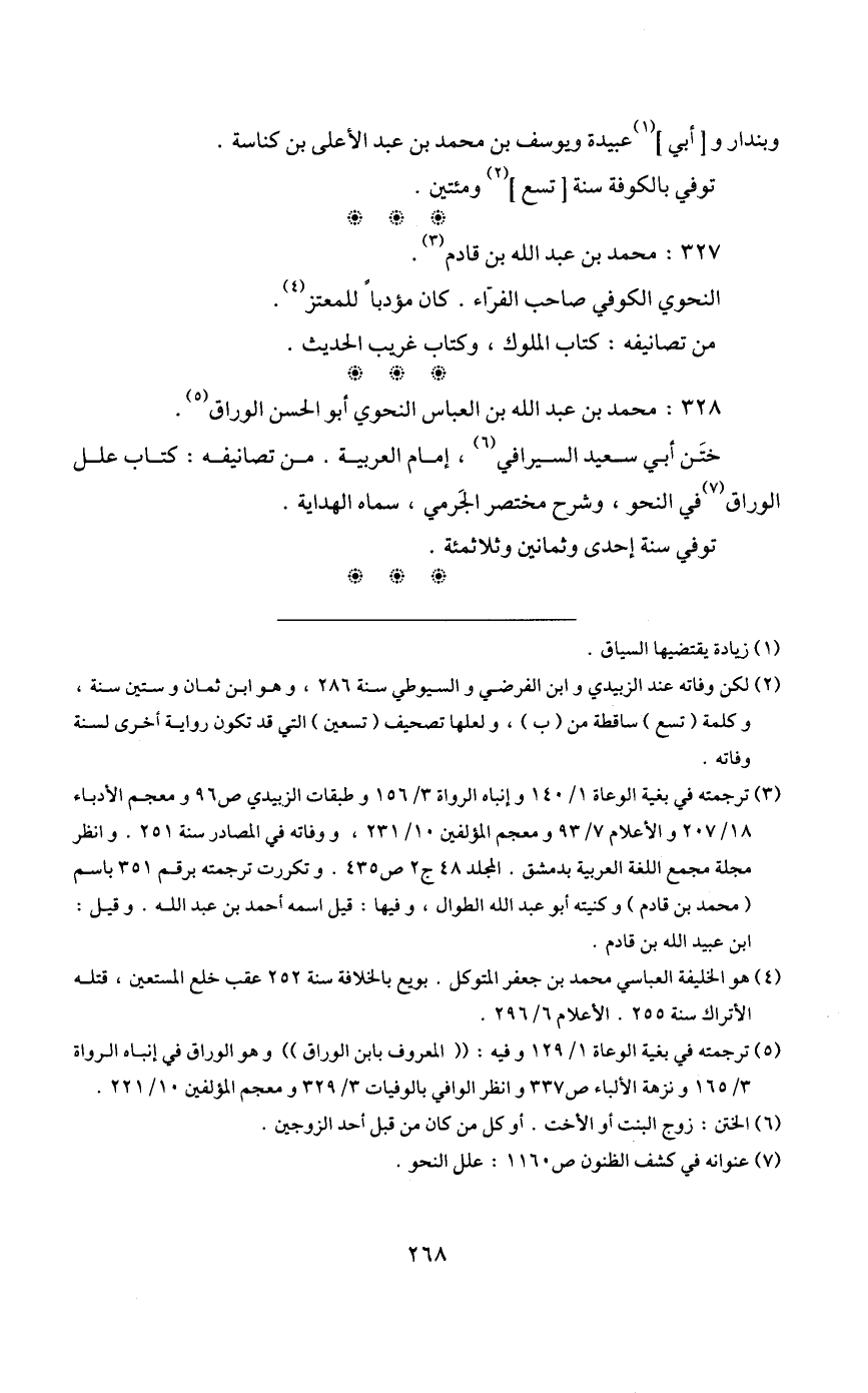 328- محمد بن عبد الله بن العباس النحوي أبو الحسن الوراق5.